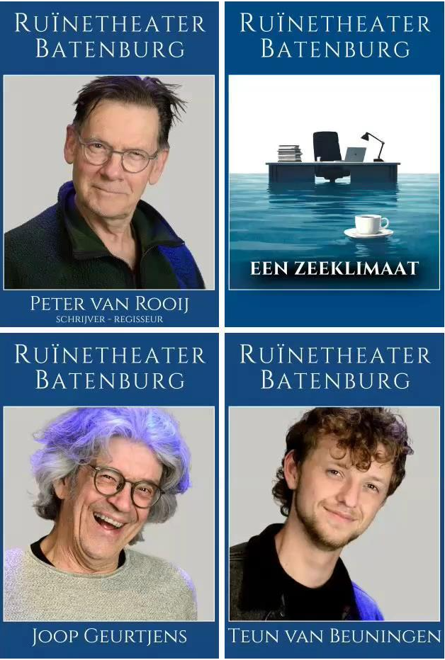 Als u gedacht had hier het hele verhaal te lezen wat u in de voorstelling te zien en te horen krijgt, moeten we u teleurstellen. Natuurlijk moet u komen kijken en luisteren naar wat onze regisseur Peter van Roon samengesteld heeft. Laat u verrassen met een verhaal over hoe verschillende personen tegen het klimaat aan kijken.